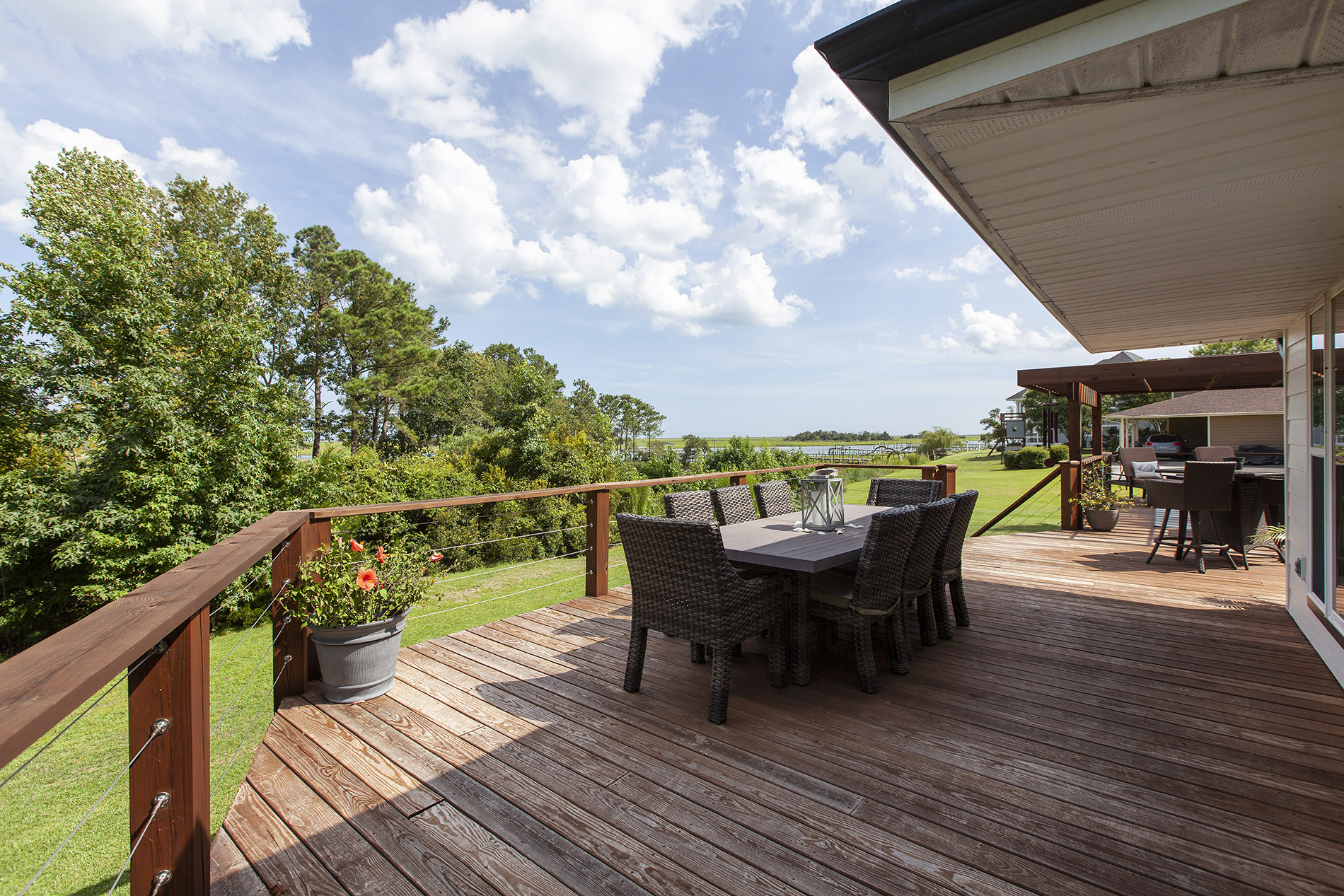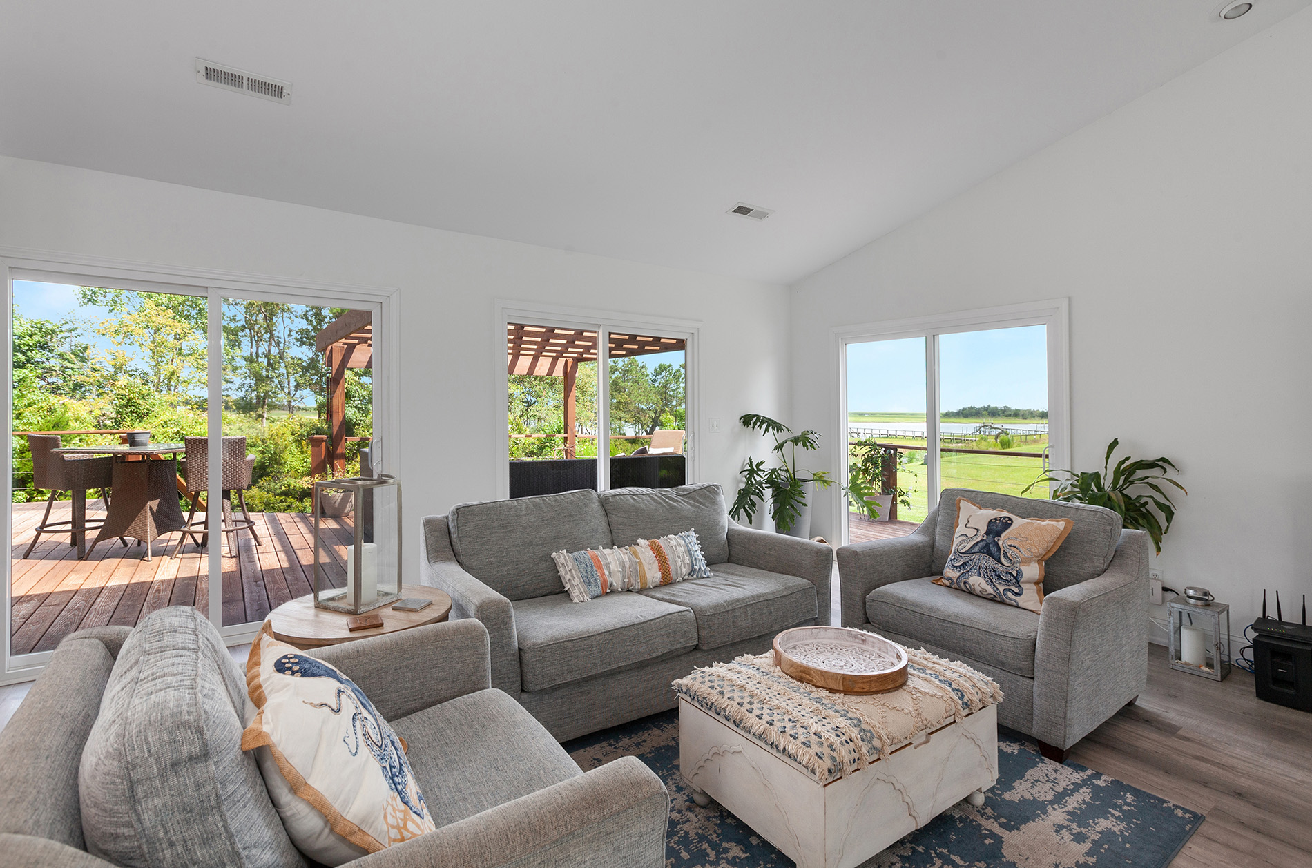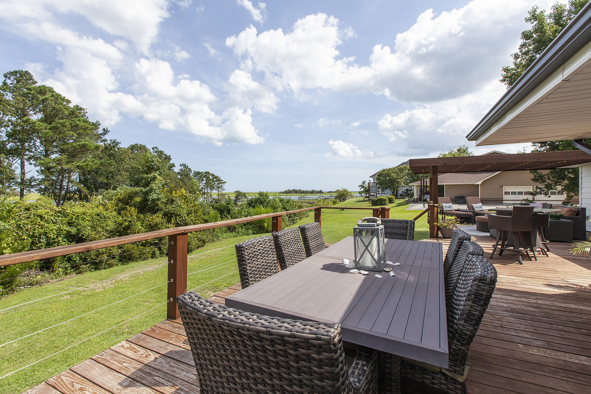 Welcome home to this magnificent move in ready home with expansive views of the Intracoastal Waterway from nearly every room of the house! Views like this with an updated home to match don’t come available very often, especially with just a 6-figure price tag. Upon entering, you will find lovely and durable LVP flooring throughout the downstairs, with an open concept kitchen, living, and dining area. Beautifully updated kitchen with quartz countertops and tile backsplash, and tons of natural light with the many windows, also providing the gorgeous water views. A well-appointed master suite is on the first floor, along with an additional full bathroom off of the garage entrance for an easy, mess-free return from your day at the beach! Upstairs are 3 additional bedrooms and a large living area, providing a nice private oasis for your guests or other family members. Walk in closets in the bedrooms provide plenty of storage. The newly rebuilt deck with beautiful cable rails is HUGE and a great place to unwind and soak in the coastal breeze while boat watching. This home includes a whole house generator for peace of mind, and sits on over an acre lot that has a circular driveway with plenty of parking space, all with no HOA dues or city taxes. Located in the well-established southern end of Hampstead, you are less than 15 minutes to Porters Neck shopping and restaurants, 20 minutes to Surf City and Topsail beaches, and 25 minutes to ILM International Airport. Schedule your appointment to see this amazing home for yourself!