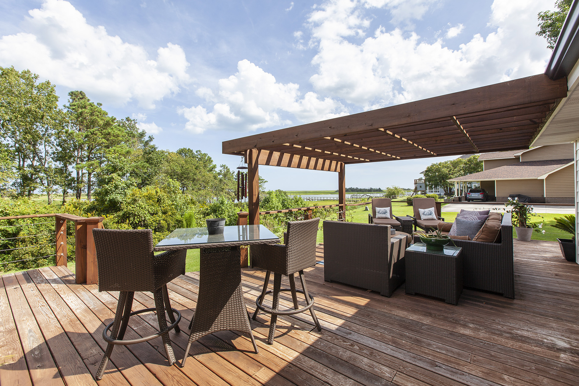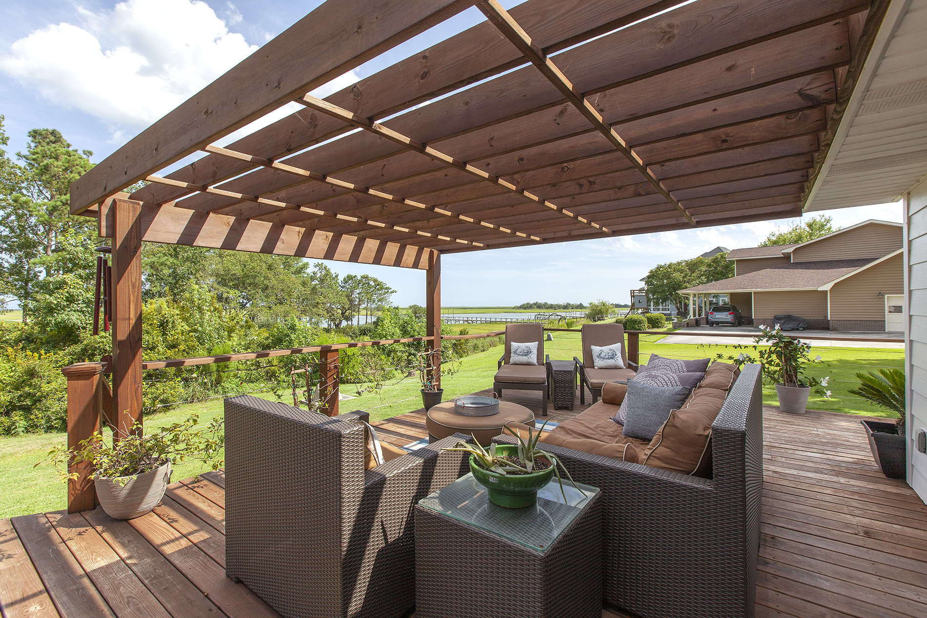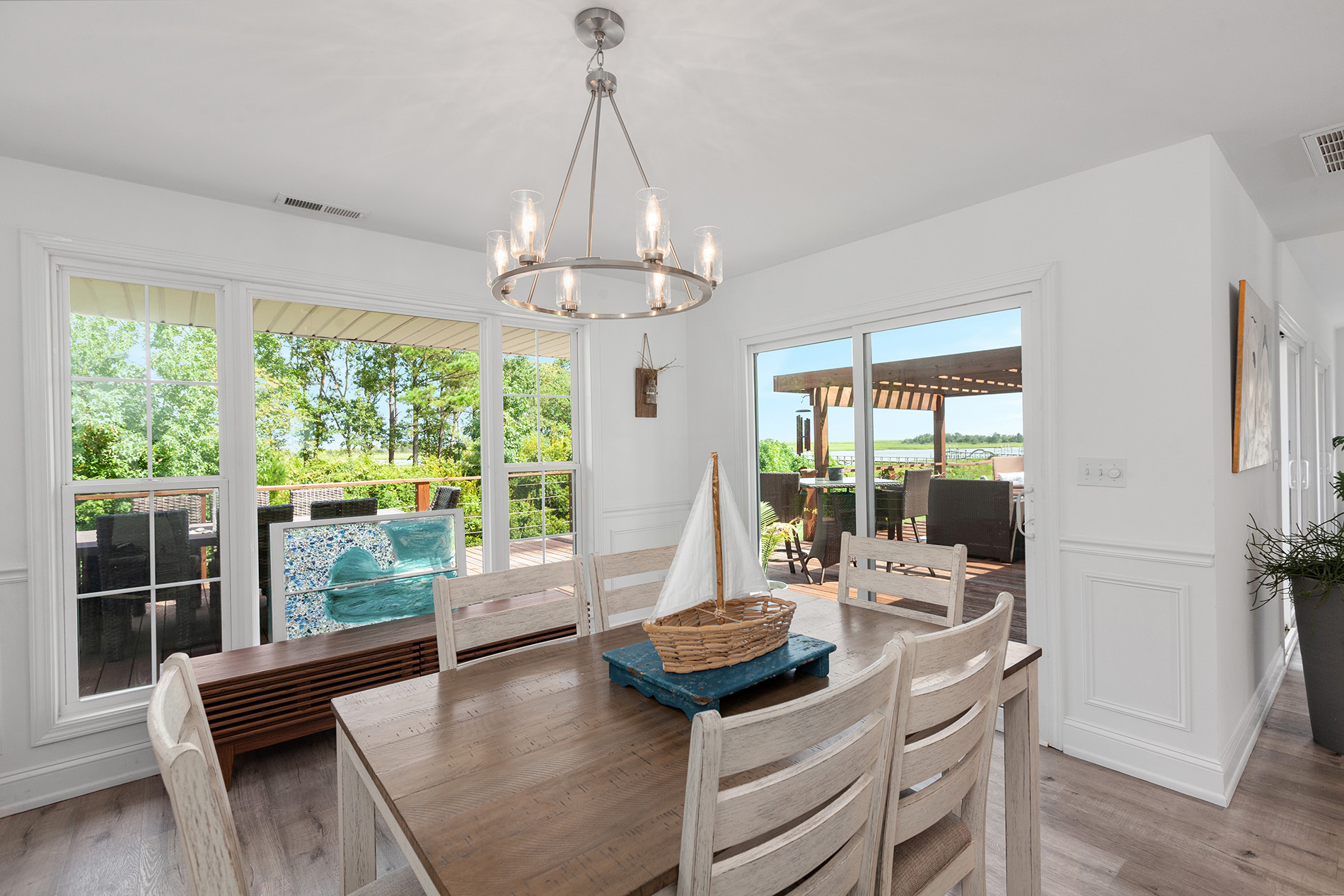 Welcome home to this magnificent move in ready home with expansive views of the Intracoastal Waterway from nearly every room of the house! Views like this with an updated home to match don’t come available very often, especially with just a 6-figure price tag. Upon entering, you will find lovely and durable LVP flooring throughout the downstairs, with an open concept kitchen, living, and dining area. Beautifully updated kitchen with quartz countertops and tile backsplash, and tons of natural light with the many windows, also providing the gorgeous water views. A well-appointed master suite is on the first floor, along with an additional full bathroom off of the garage entrance for an easy, mess-free return from your day at the beach! Upstairs are 3 additional bedrooms and a large living area, providing a nice private oasis for your guests or other family members. Walk in closets in the bedrooms provide plenty of storage. The newly rebuilt deck with beautiful cable rails is HUGE and a great place to unwind and soak in the coastal breeze while boat watching. This home includes a whole house generator for peace of mind, and sits on over an acre lot that has a circular driveway with plenty of parking space, all with no HOA dues or city taxes. Located in the well-established southern end of Hampstead, you are less than 15 minutes to Porters Neck shopping and restaurants, 20 minutes to Surf City and Topsail beaches, and 25 minutes to ILM International Airport. Schedule your appointment to see this amazing home for yourself!